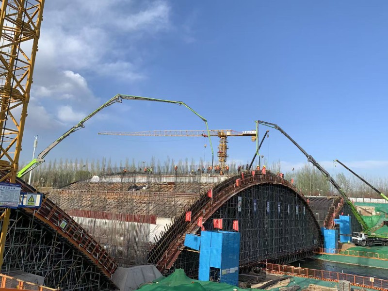 該橋采用單跨72米連續(xù)5跨設(shè)計(jì),主腹拱作為橋梁的核心承重結(jié)構(gòu),是此次橋梁施工的核心節(jié)點(diǎn),項(xiàng)目團(tuán)隊(duì)順利克服弧形施工、模板一次成型、大體量澆筑、五跨精準(zhǔn)落架等挑戰(zhàn),以“毫米級(jí)”精度貫穿施工全過(guò)程,為橋梁成型打造堅(jiān)實(shí)“筋骨”。