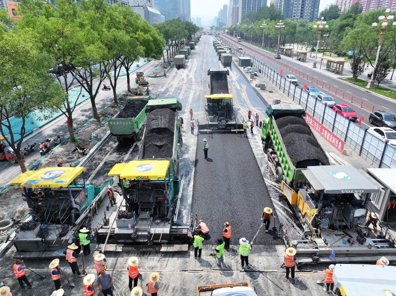 太原市政集團(tuán)堅(jiān)持“精準(zhǔn)、精細(xì)、精致”施工理念,始終以“零容忍”態(tài)度對(duì)待質(zhì)量細(xì)節(jié),以“全過程”思維把控施工環(huán)節(jié),緊盯鋼板樁支護(hù)、溝槽回填、水穩(wěn)瀝青攤鋪、花崗巖鋪裝等關(guān)鍵環(huán)節(jié),全力打造既擁有堅(jiān)固挺拔內(nèi)在骨架,更展現(xiàn)靚麗宜居嶄新面貌的城市主干道。全周期筑牢地下“安全防線”,嚴(yán)格控制鋼板樁施打全過程,按照“先支后拆、分段拔除”原則有序進(jìn)行,最大限度減少土體擾動(dòng),實(shí)現(xiàn)安全施工與環(huán)境保護(hù)和諧統(tǒng)一;全流程精控管網(wǎng)“堅(jiān)固壁壘”,重點(diǎn)控制基底處理質(zhì)量,對(duì)軟弱地基進(jìn)行換填加固,采用分層回填工藝,及時(shí)進(jìn)行壓實(shí)度檢測,真正做到“一層一驗(yàn)、壓實(shí)到位”;全方位筑牢道路“內(nèi)在骨架”,采用機(jī)械化作業(yè)模式,嚴(yán)格執(zhí)行“先輕后重、先邊后中、先慢后快”規(guī)范流程, 全程緊盯拌合、運(yùn)輸、溫度等關(guān)鍵環(huán)節(jié),精準(zhǔn)控制標(biāo)高與平面位置,保障各工序銜接無縫順暢;全環(huán)節(jié)細(xì)究扮靚“民生畫卷”,嚴(yán)格執(zhí)行材料遴選標(biāo)準(zhǔn),采用“試鋪—校正—精鋪”工藝流程,確保接縫寬度保持均勻一致,達(dá)到平整美觀、堅(jiān)固耐用的質(zhì)量要求。